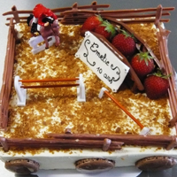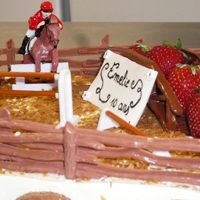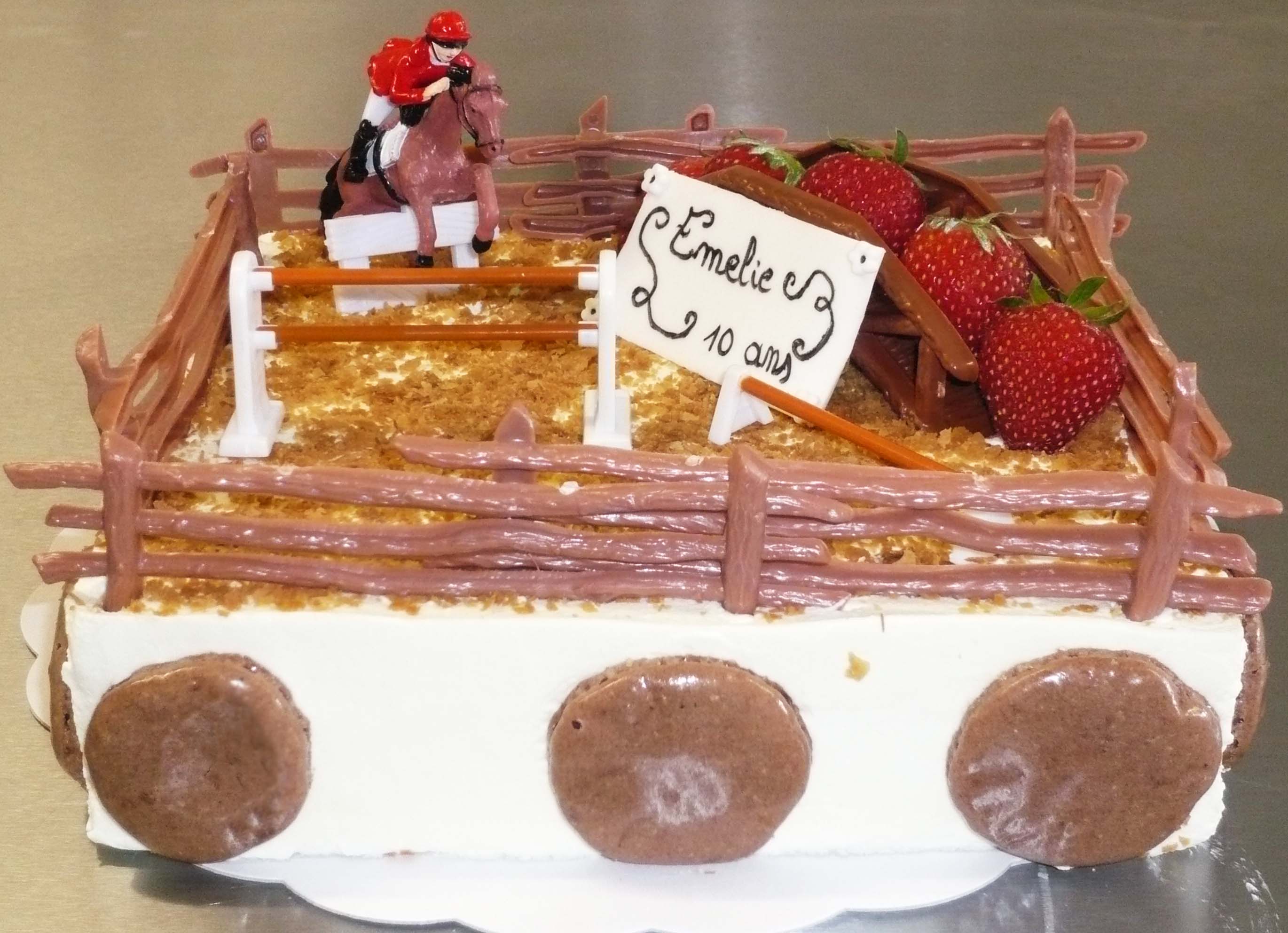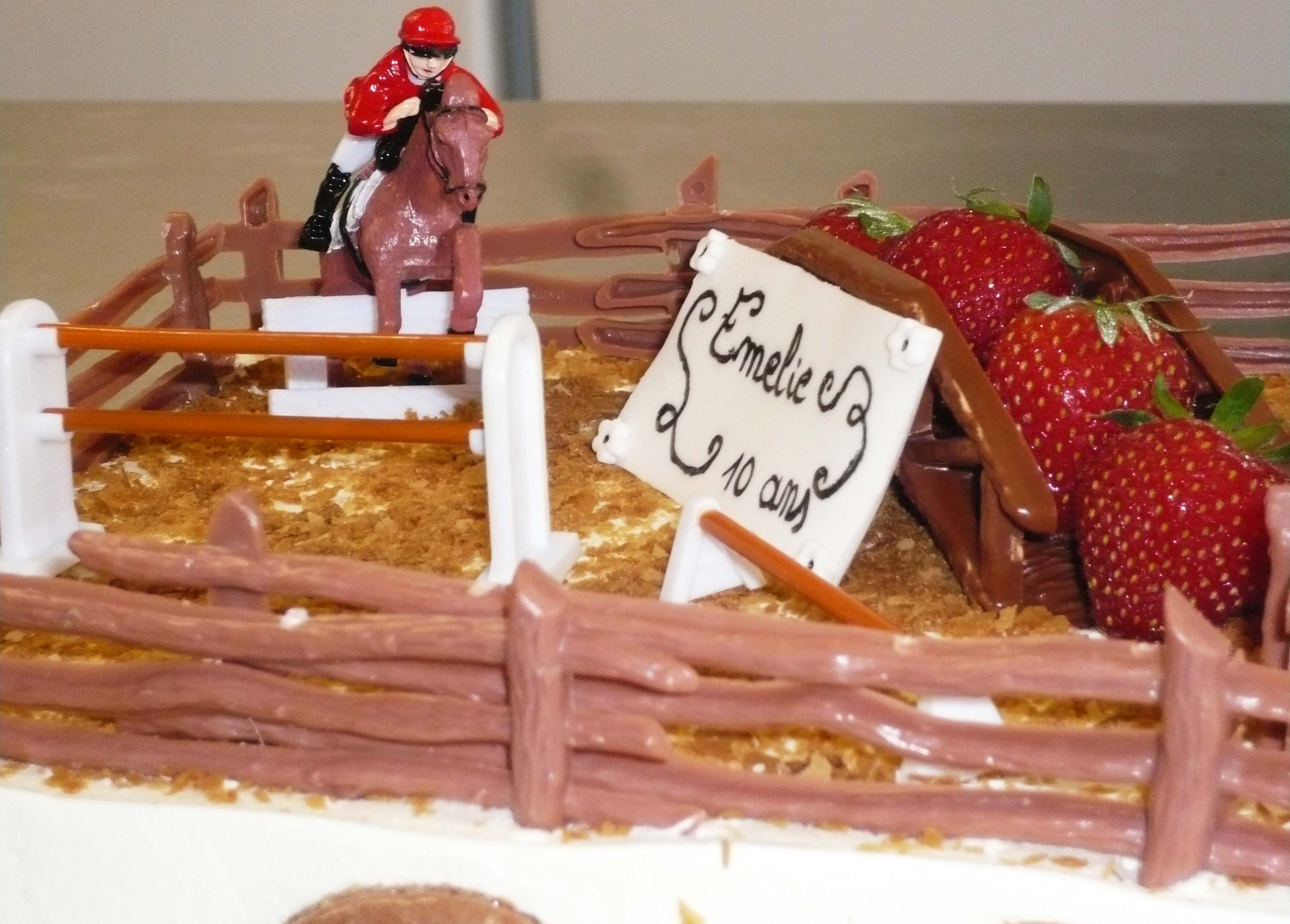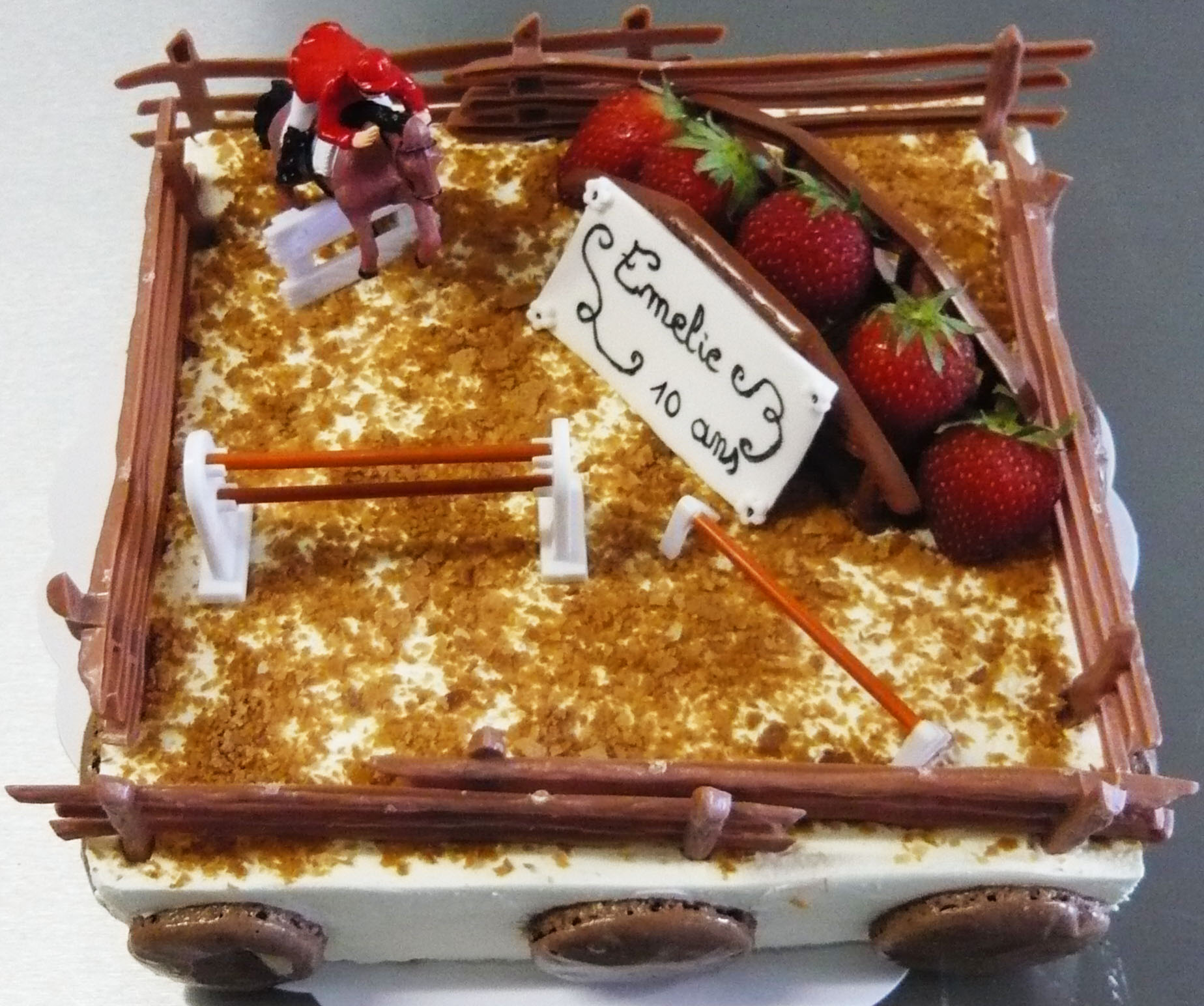 Gâteau aux fraises et à la chantilly décoré en parcours d'obstacle.