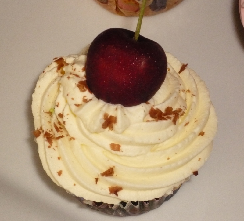 Cupcake chocolat avec crème chantilly aromatisée à la vanille décoré avec une cerise