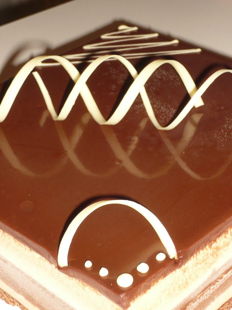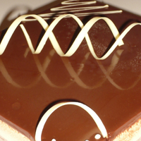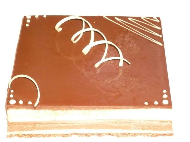 Ce beau gâteau carré se compose d’un fond croustillant de sablé breton au chocolat surmonté d’un crémeux au chocolat noir et d’une mousse légère au chocolat au lait. Il est recouvert d’une ganache intense au chocolat noir et décoré tout chocolat. Les amateurs de chocolat seront comblés !