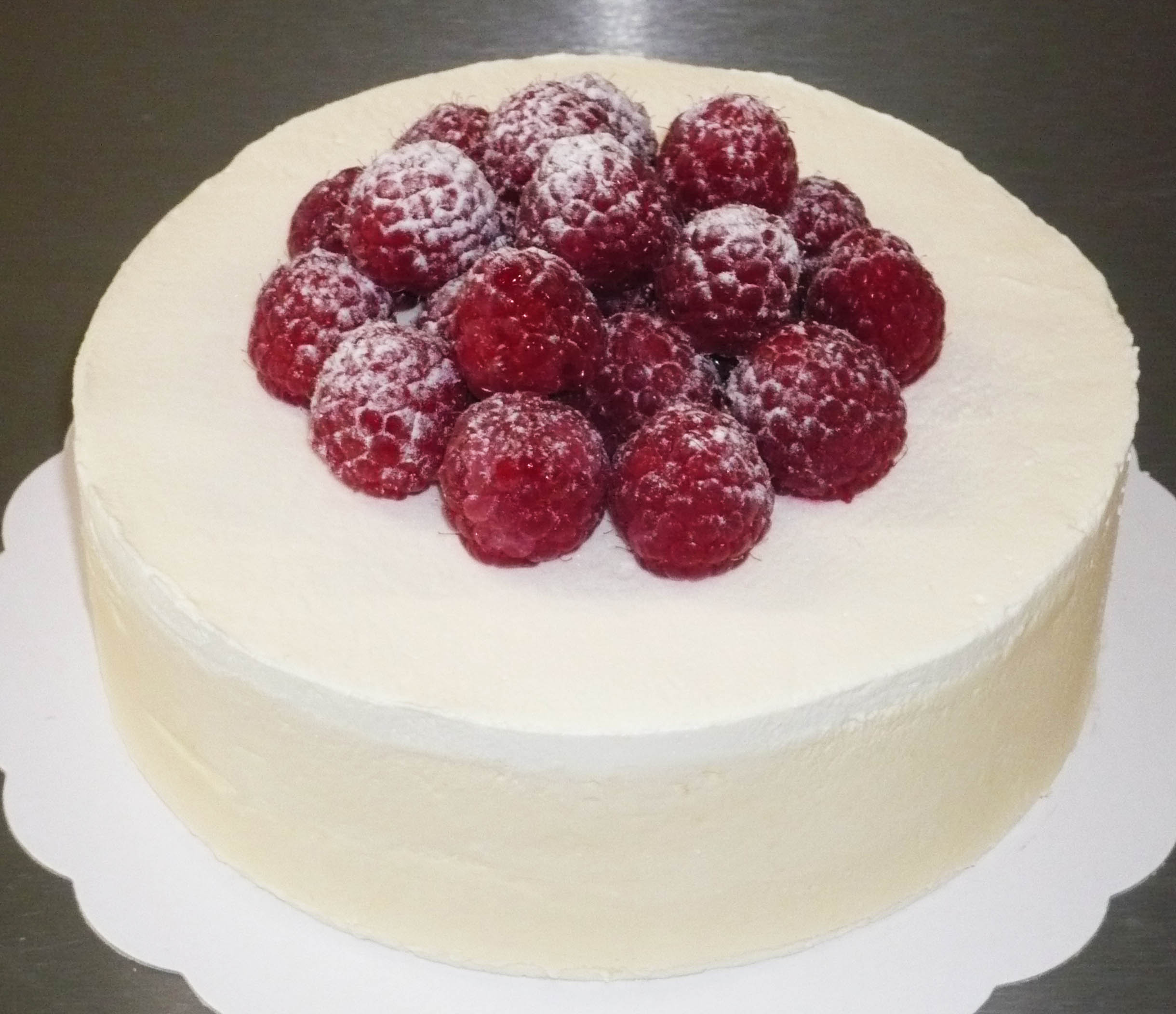 Attention ! Gâteau réservé aux fines papilles ! Il est composé d’un biscuit moëlleux, d’une mousse légère à la ricotta et décoré de framboises fraîches. Un goût subtil que vous apprécierez à coup sûr !