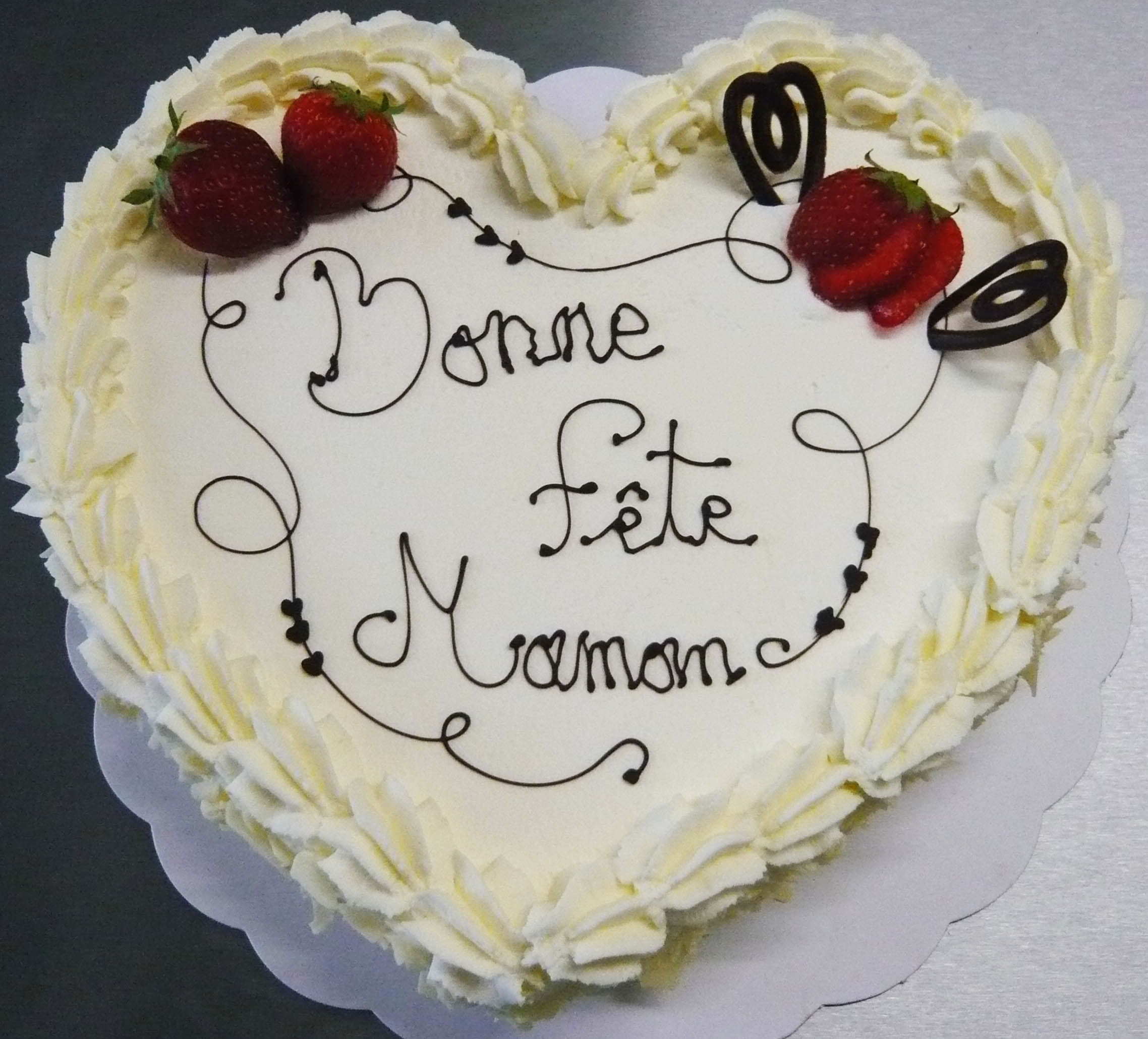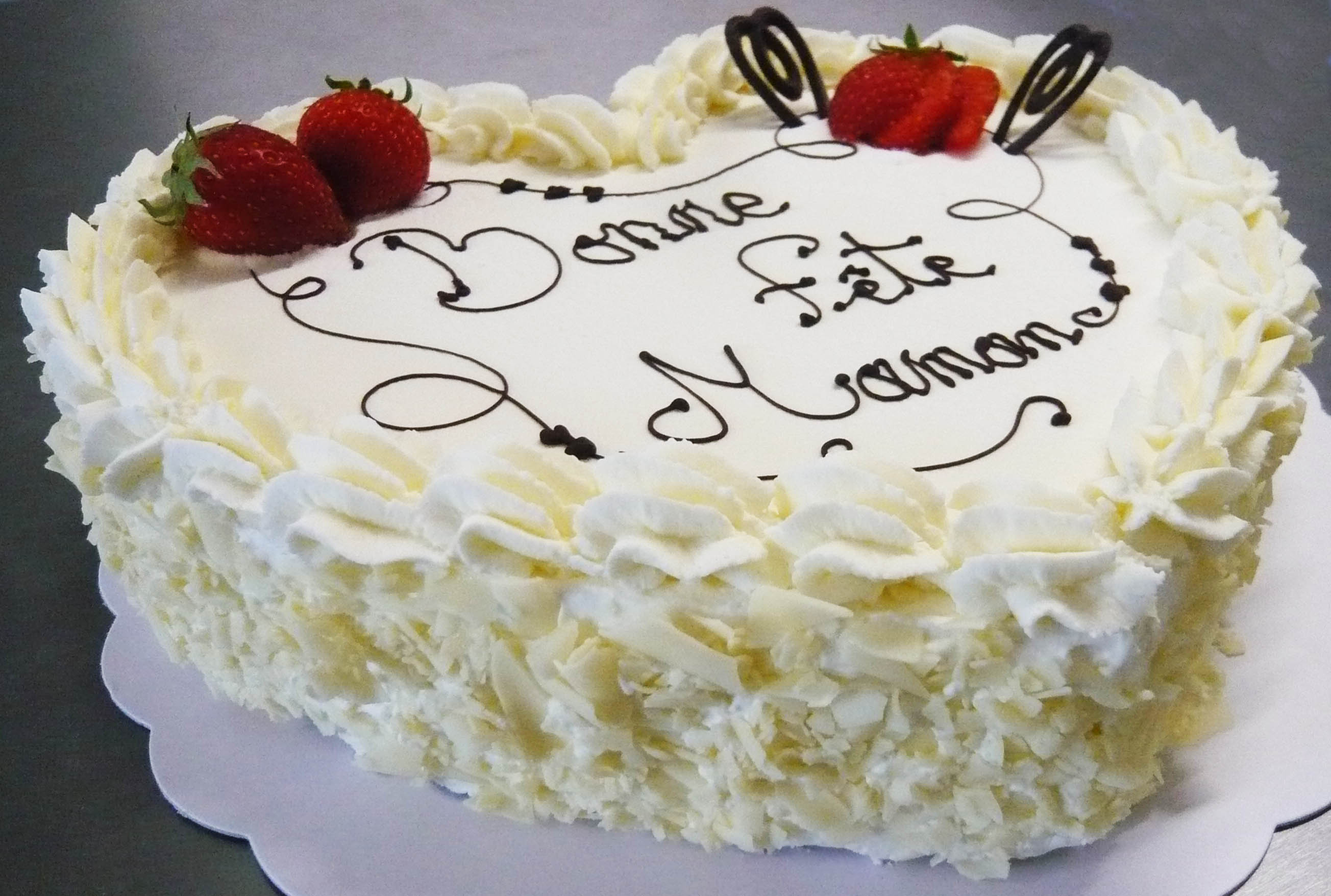 Ce gâteau en forme de coeur est composé d'un biscuit moelleux aux amandes, de crème chantilly et de fraises belges fraîches.