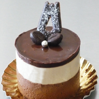 Il se compose d'un biscuit moelleux aux amandes, d'un crémeux au chocolat noir et d'une mousse légère au café.
